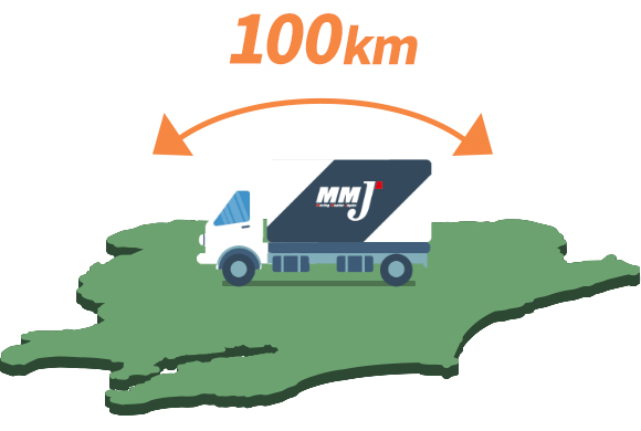 MMJでは、目安でいうと100km位なら通常は同一料金です。